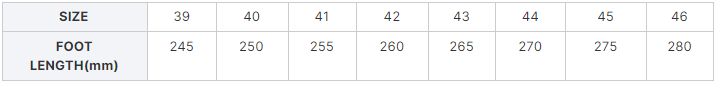 Size: 39, 40, 41, 42, 43, 44-46 (available)